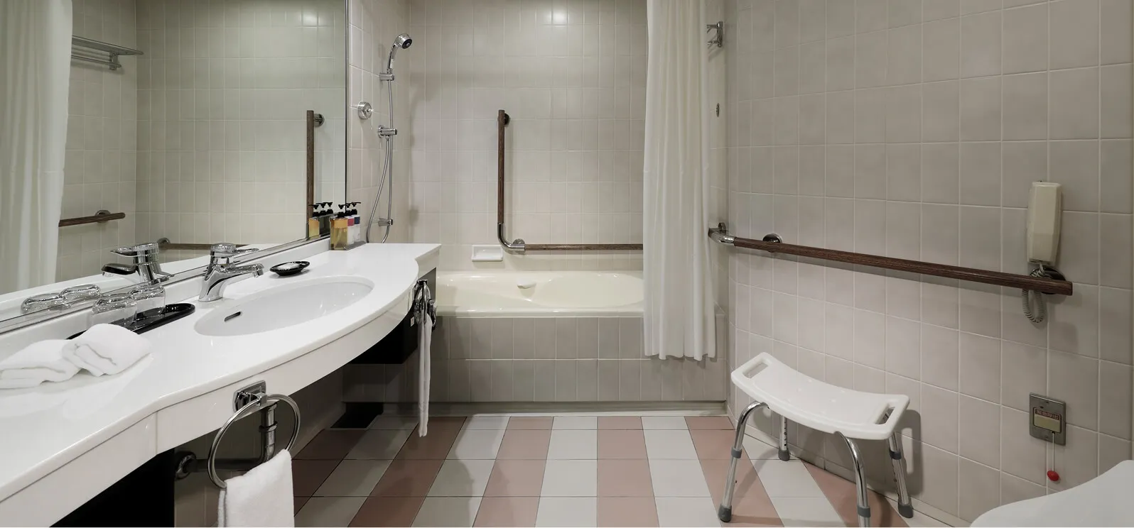 一部客室にウォークインシャワーと手すりつきバスルームあり