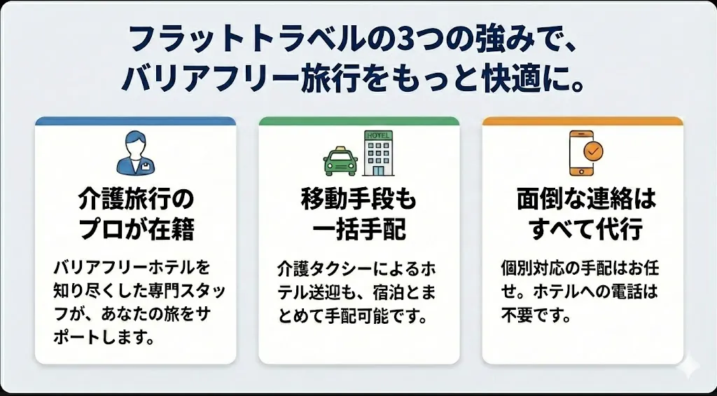- バリアフリー旅行ならフラットトラベルにお任せください