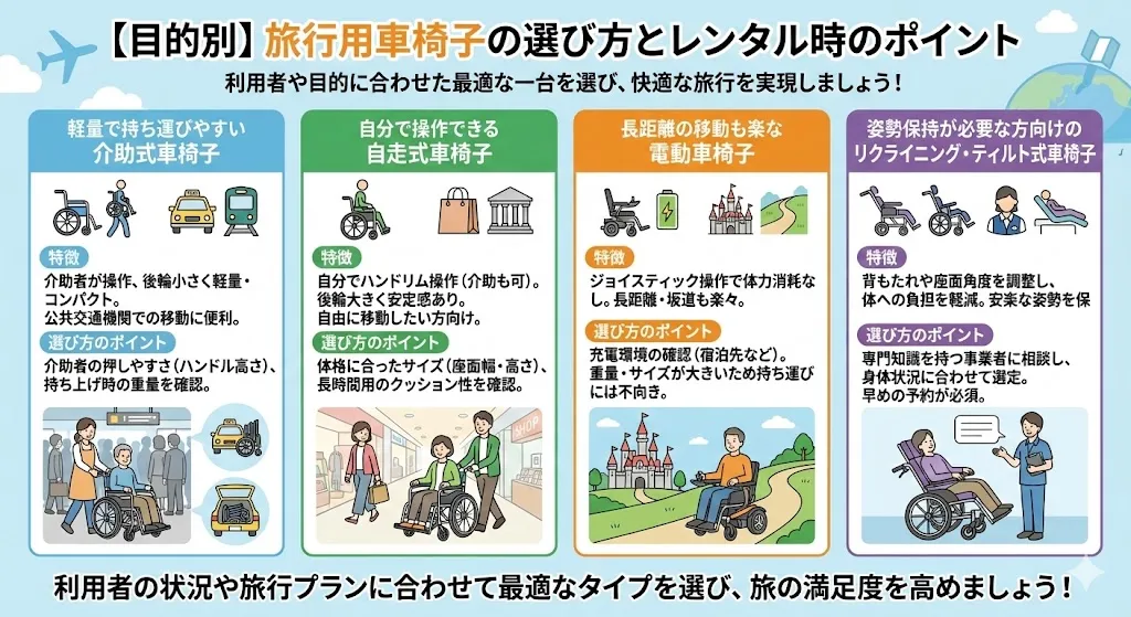 - 【目的別】旅行用車椅子の選び方とレンタル時のポイント