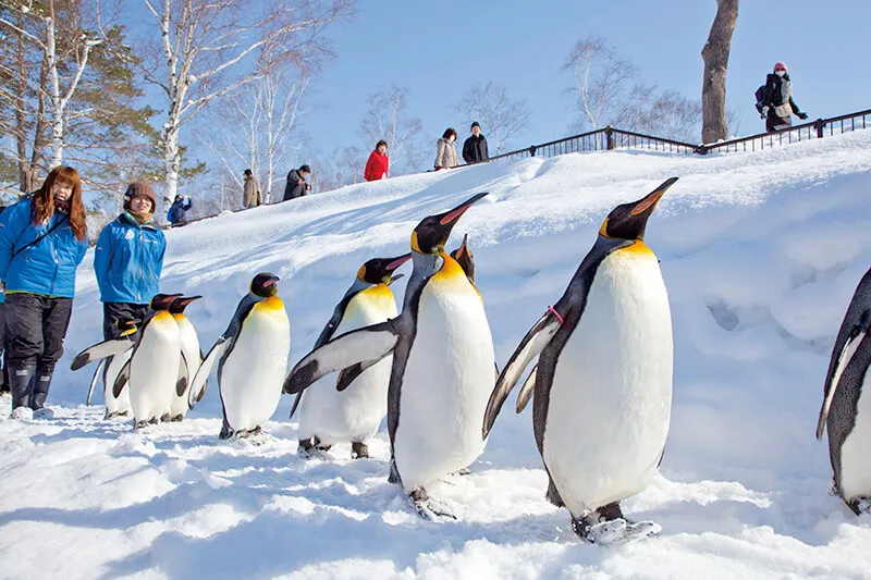 日本最北の動物園であり、動物本来の能力や野生での行動を引き出す「行動展示」で世界的に知られています。円柱水槽を通り抜けるアザラシや、空を飛ぶように泳ぐペンギンなど、まるで映画のワンシーンのような光景が広がります。特にきりん舎では、テラスから大人のキリンと同じ目線で観察でき、長い舌や優しい瞳を間近に感じる体験は圧巻です。園内は坂道が多いですが、福祉車両による送迎や優先ルートが整備されており安心です。夏でも肌寒く感じる日があるため、上着を持っていくのが通例です。