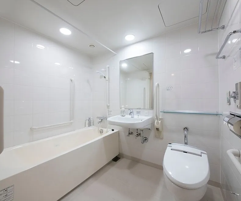 ユニバーサルルーム内に手すり付きユニットバスあり(※洗い場付きではなく浴槽タイプ)