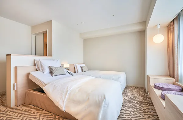 多彩な客室と高層階の眺望:シンプルで機能的な部屋から、高層階のラグジュアリーな部屋まで多様なニーズに対応。札幌の街並みや夜景を楽しめます。
